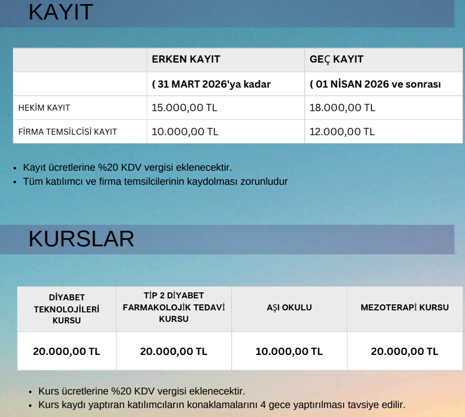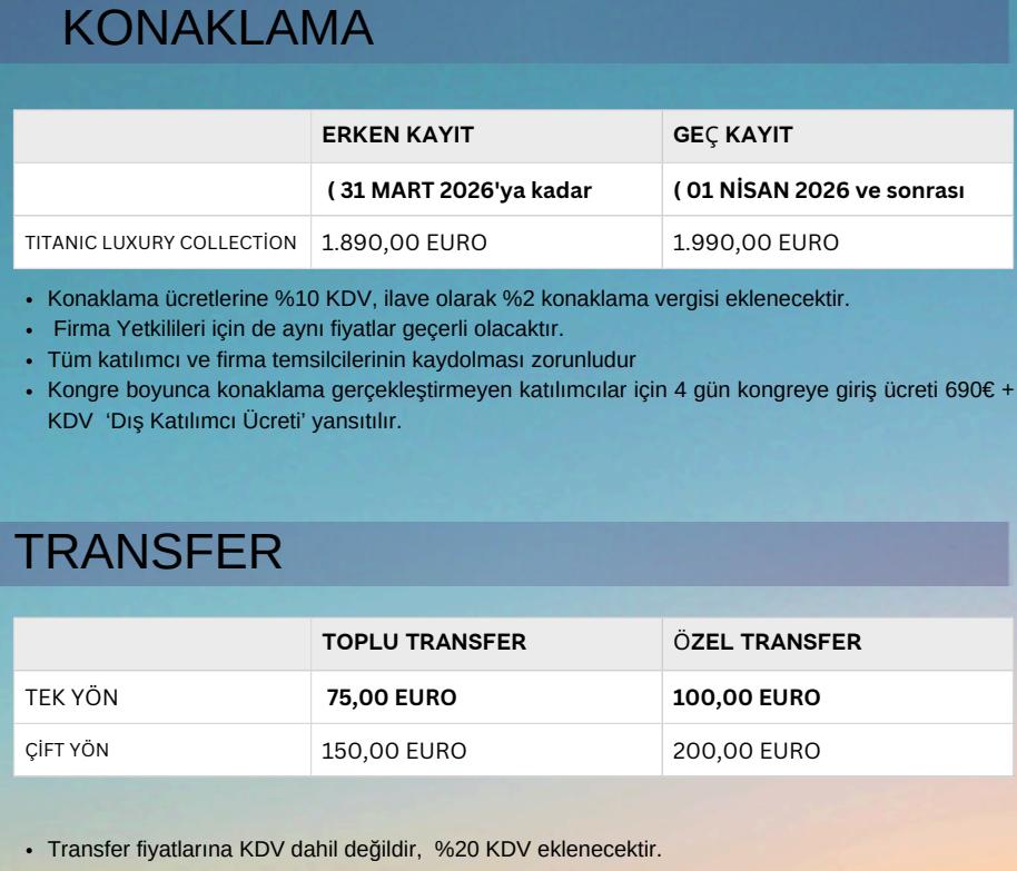 • Otelde gerçekleşecek akşam etkinlikleri dış katılım ücretine dahil değildir. Katılmak isteyen